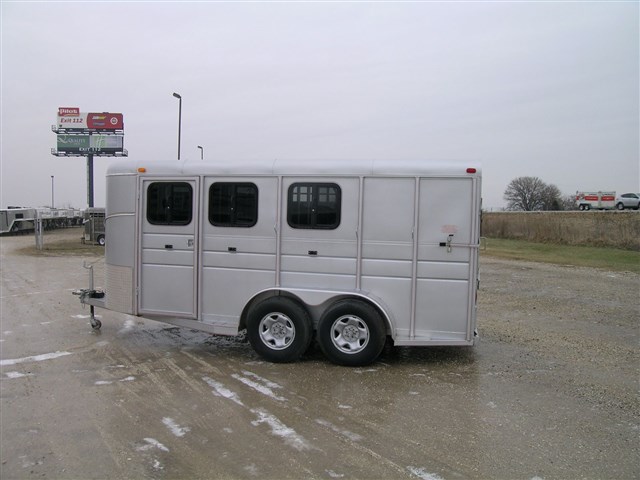 2016 Calico 3 Horse trailer with 4'SW Dress BP, Steel Construction with Wood Floor, 4' Short Wall Dress, 6' Wide, 6'6 Interior Height, 17' Floor Length, 20' Overall Length, Drop Down Feed Windows, Escape Door with Drop Down Feed Window, Full Swing Rear Door, (1) Dome Light In Horse Area, (2) 3500# Axles 6 Bolt Steel Wheels, ST235/80 R16 Tires, Diamond Plate On Nose Of Trailer, Dressing Room Details:, 3 Stack Saddle Rack * Bridle Hooks, (1) Dome Light