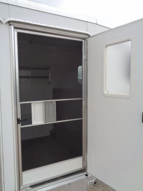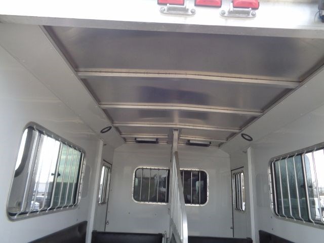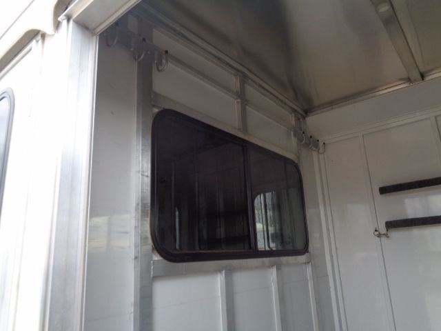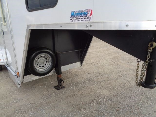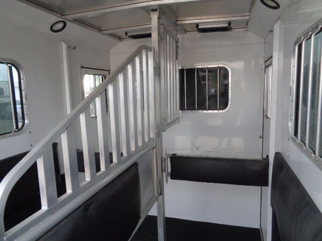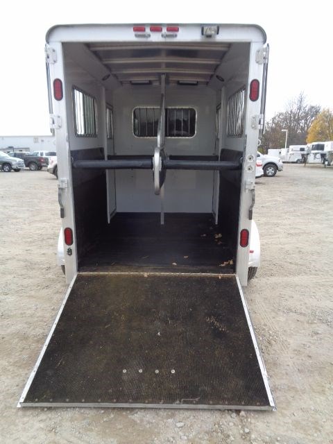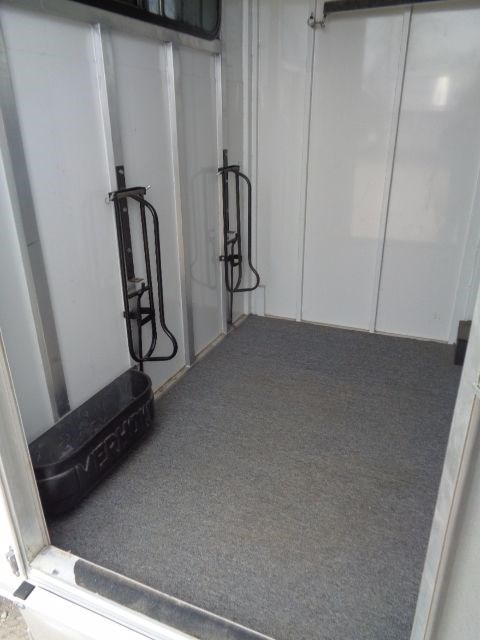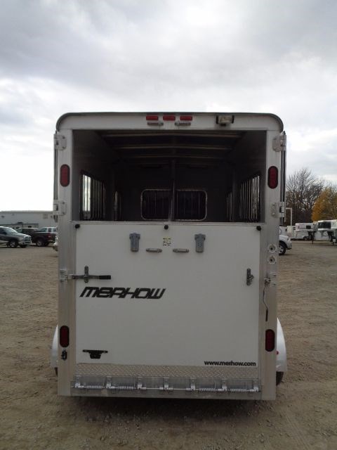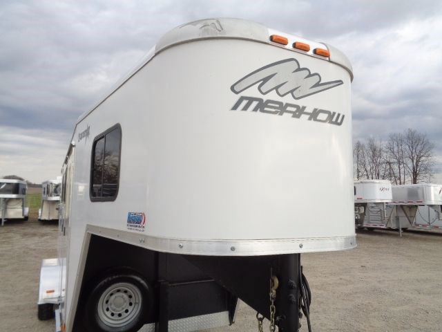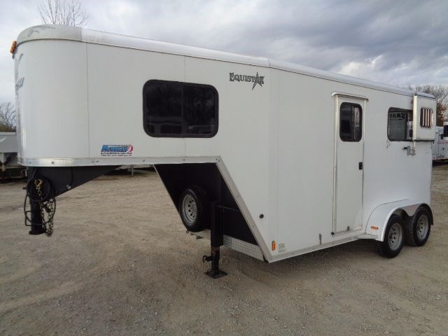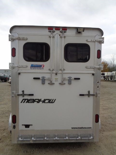 It's a 2011 Merhow Equistar 2 horse straight load, gooseneck trailer with a 4' straight wall dressing room. Trailer measures 7'6" tall with a 14' floor length, includes a rear loading ramp, saddle rack, swinging blanket bar, brush box, halter hooks, padded dividers, double escape doors, camper step into dressing room.