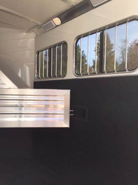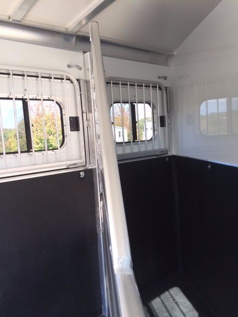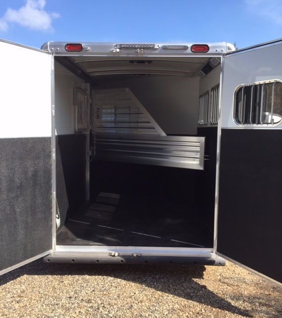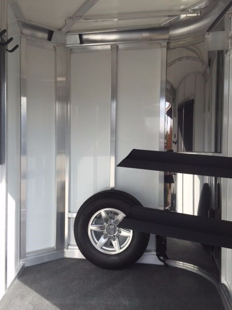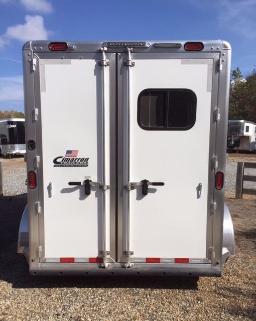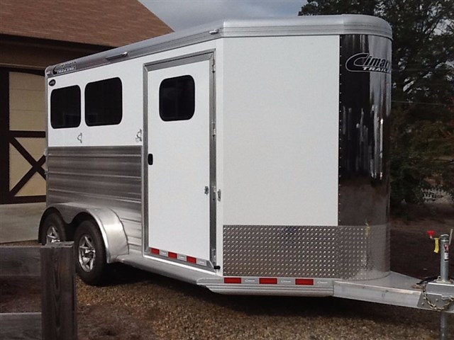 2017 Cimarron Norstar RTG 2 horse trailer slant load. All aluminum 2 horse slant bp, 7' 4 tall, 6'10 Wide, 4'3 shortwall dressing room, drop windows on the head, sliding windows on the butt side, Double walled and insulated walls in the horse area, insulated roof in horse area and dr rm, 2 pop up roof vents, bridle hooks, clothes rod, 25 gal water tank, Swing out saddle rack in the dr rm, tack door organizer, carpet in dr rm, alum floor with mats, complete spare, 3500 lb torflex axles, Dual brakes, running boards, extruded sides, LED lights, 2 loading lights, and 60/40 double rear doors.