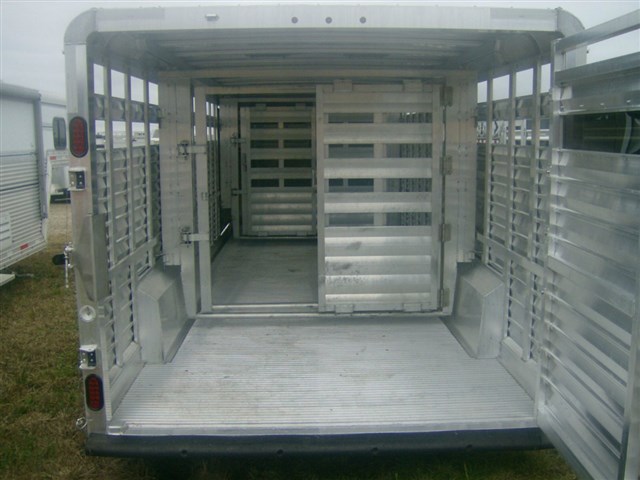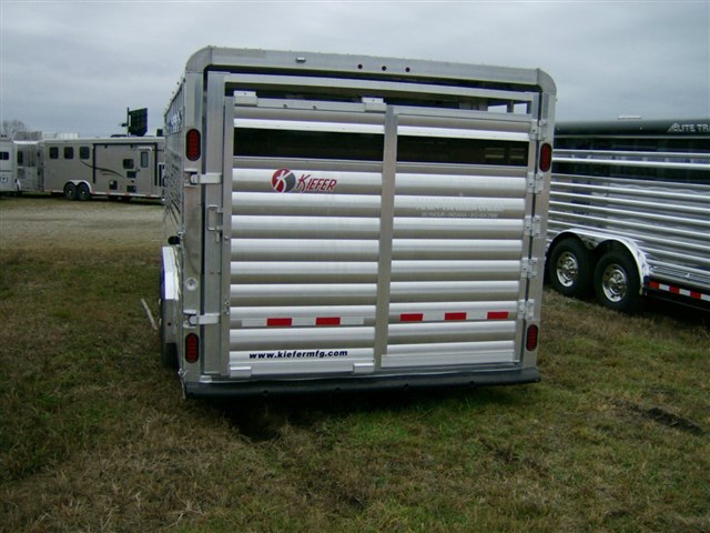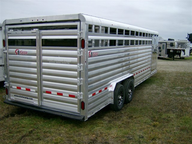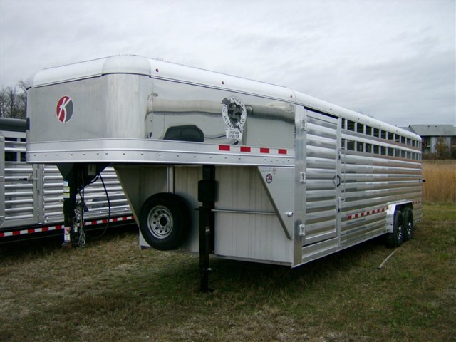 2015 Kiefer 8x24 gooseneck show stock. The stock area has two floating cut gates with half sliders, escape door, rear gate with a 1/2 slider, and a calf gate in the nose. Tho outside features aluminum extruded sides, stainless side ramp, stainless sheets on the nose, aluminum rims, and a full size spare. This trailer has been lightly used as a demo for the last year.