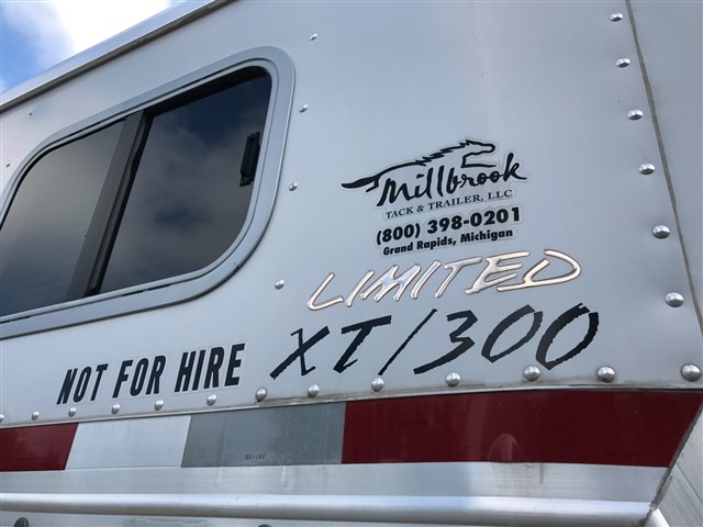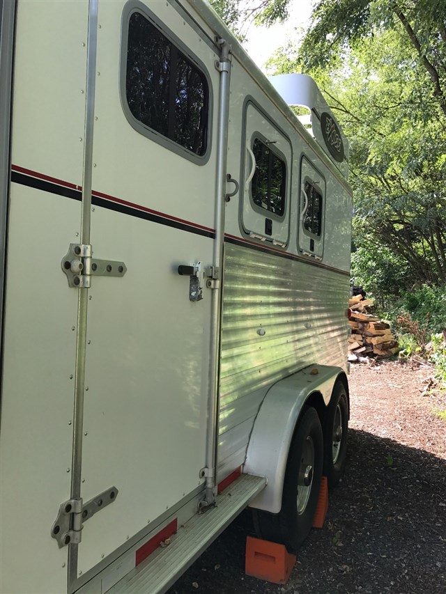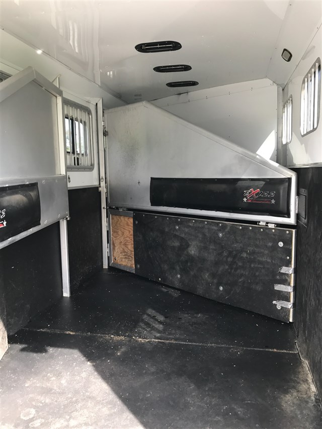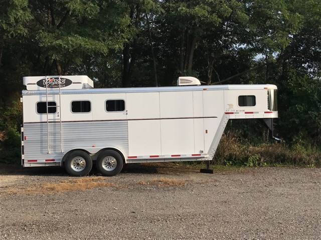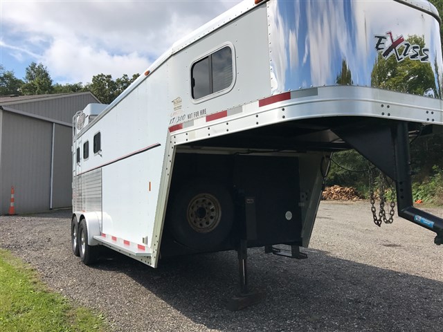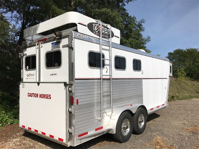 2005 Exiss XT/300 10th Anniversary Edition Limited Edition . 3 Horse Slant trailer with Extruded Aluminum. 7 foot wide and 7 foot 2inch height. Three foot short wall with weekend package (AC/electric heat), insulated, and power in dressing room. MANY extras including, power jack, new AC, fully insulated in both horse and dressing room, full ramp, rhino-lined in both horse area (sides/floor) and outside in front, spare tire, drop down windows, stud wall, escape door on first horse, and collapsable rear tack. Stored inside with limited use. Total weight of trailer is under 5000lbs (able to haul with half ton pickup). Large axels (two 5200 lb rubber torsion axels with electric breaks) with 16in tires (including spare).