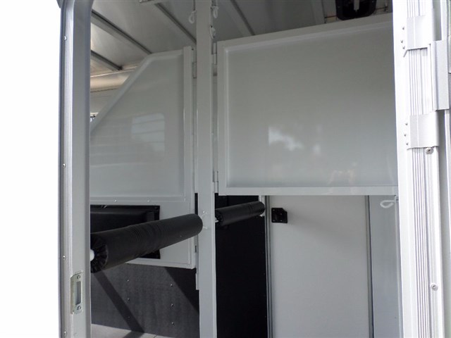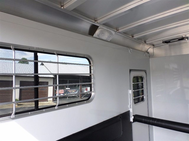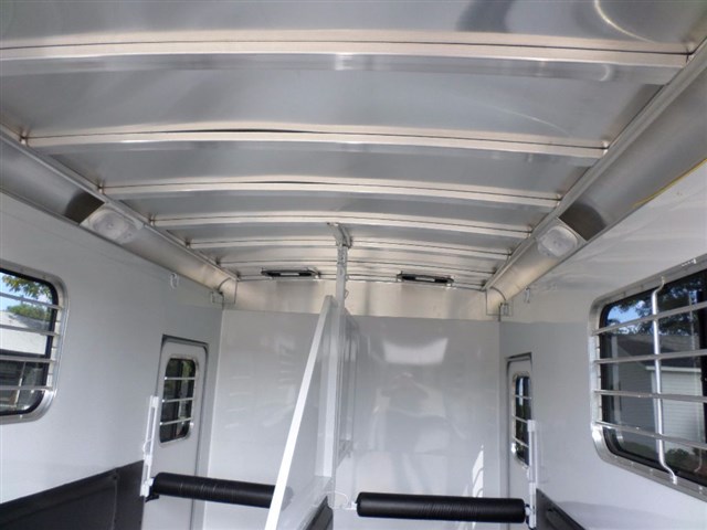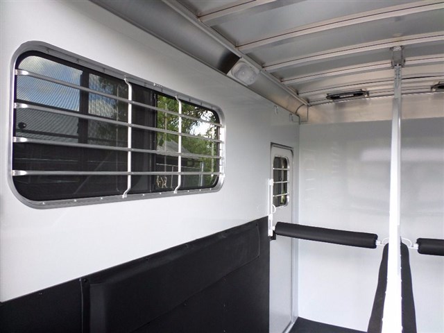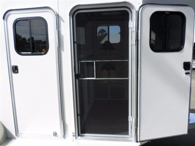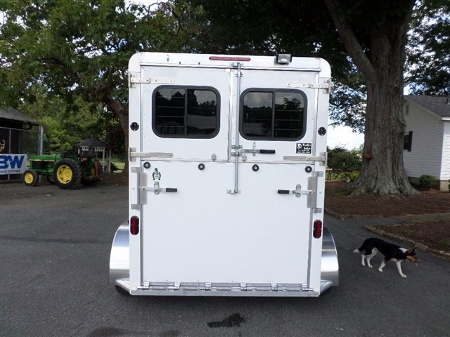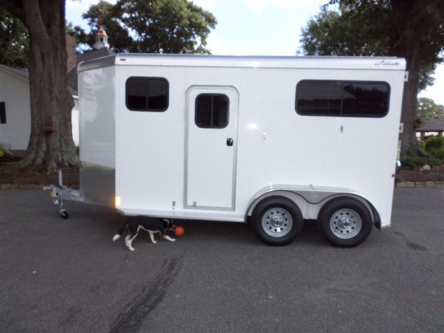 2017 Adam 2 Horse Straight Load 710A-DR, 14x6x7'6", 2 3500# Torsion Axles with Brakes, 15" 8 Ply Radial Tires & Spare, Poly Lined Walls in Horse Area, Treated Floor with Heavy Duty Mats, 7' Stall Length and 3' Head Room, Partial Divider Padded, Head Divider, Two Bus Windows with Bars and Screens, 2 Escape Doors with Windows & Aluminum Hinges, Tail and Breast Bars Padded, Rear Spring Loaded Ramp with Tail Curtains with Windows, Load Light on Rear, All New LED Lights, Dome Light, Aluminum Roof Vent for Each Horse, Break Away Kit, Rock Guard on Front, Standard Clearance Lights, 4' V Nose Dressing Room/Tack Carpeted with 2 Saddle Racks and Bridle Hooks.