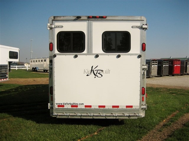 2006 Kiefer Built X-3 3 horse trailer, This all aluminum trailer measures 7'x7'x18' with an overall length of 26' and has a exterior rear ramp, 4' SW dressing room, spare tire, floor mats, stall pads, kick mats, 2 dome lights and 3 roof vents.