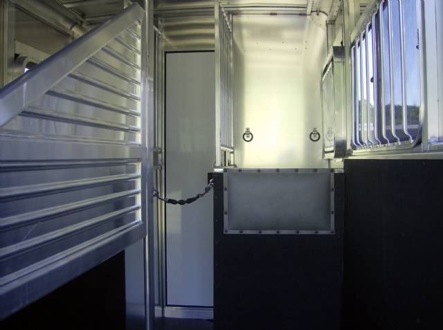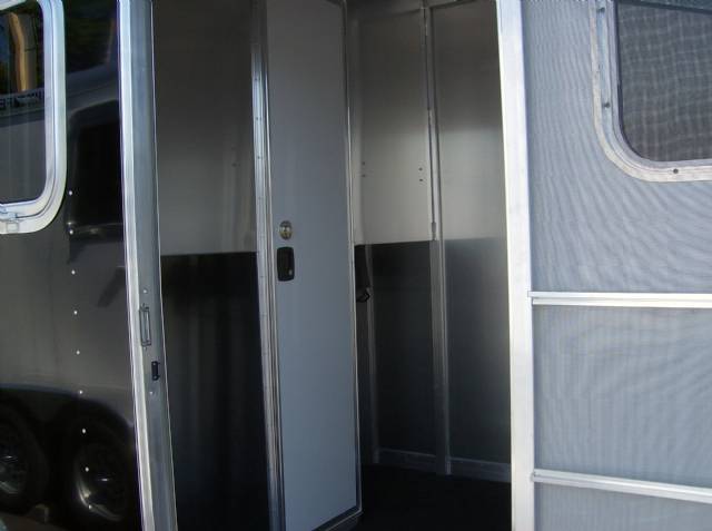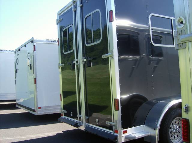 2015 Featherlite 9407 2 horse trailer, Bumper Pull, Dressing Room, Saddle Rack, Straight Load with Mangers, Drop Down Feed Doors 14' long x 6'7" wide x 7'6" high with a 48" dressing room. GVWR of 7000 lbs. Trailer weight of 3000lbs. Walk thru door from dressing room to horse area.