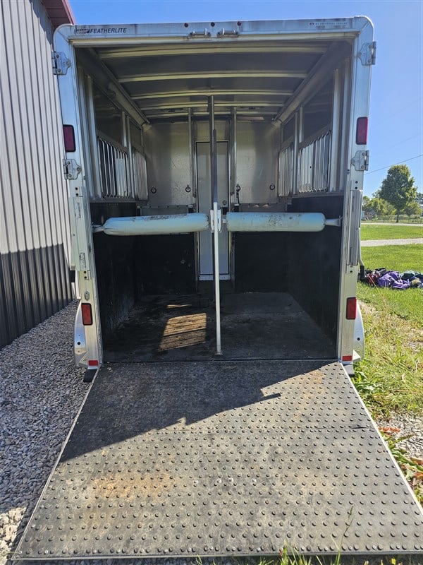 2013 Featherlite 2 horse trailer bumper pull / ramp trailer. All aluminum. Dressing room, 2 saddle managers, removable center divider. 2 new tires last year. Mostly locally hauled.