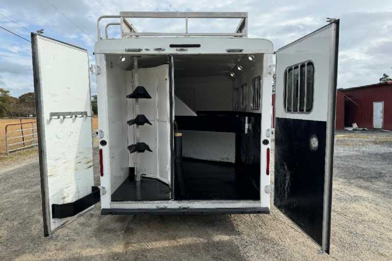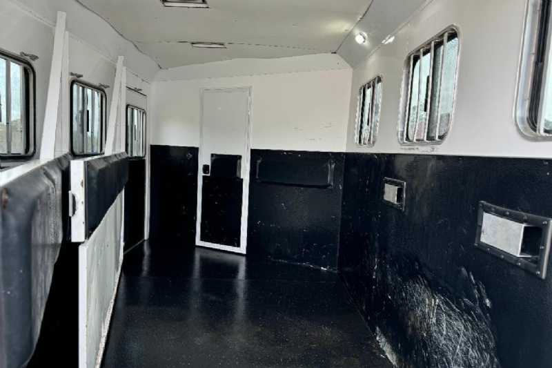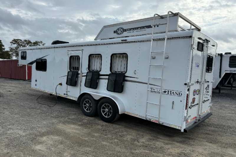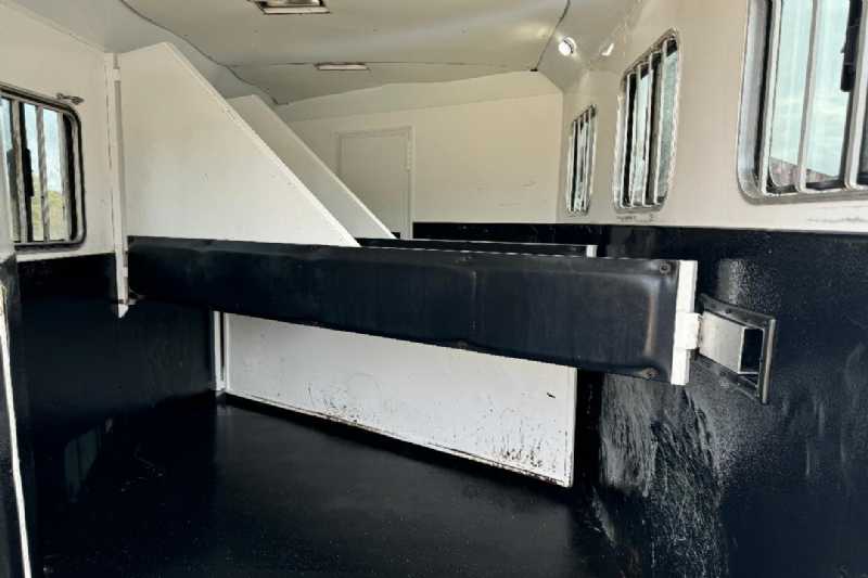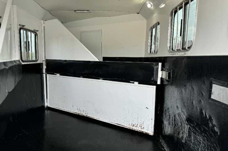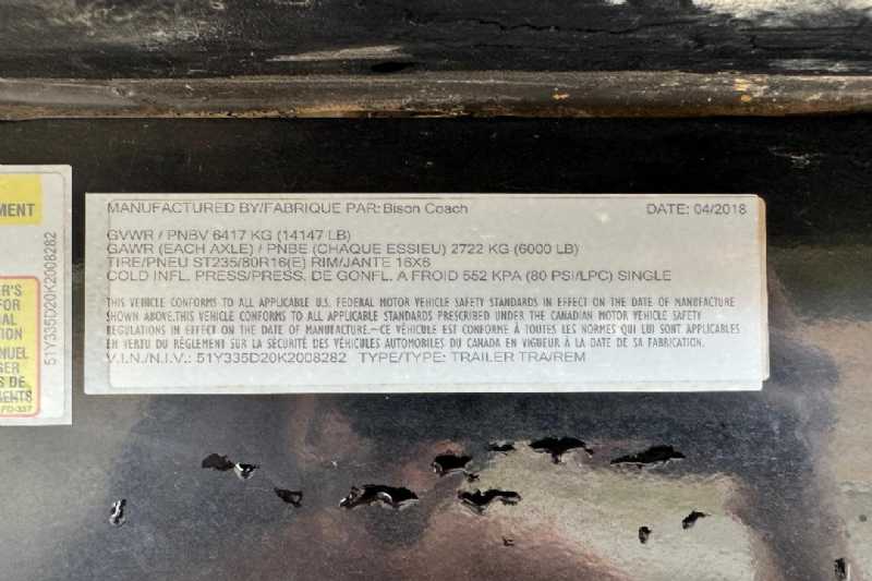 2019 Bison 8308TH, Living Quarters 8' Shortwall 11' Longwall Walk-thru Door Kitchen Refrigerator Cooktop Microwave Living Area Sofa A/C Furnace Radio Antenna Bathroom Toilet Shower Plumbing Fresh Water Gray Water Holding Black Water Holding Water Heater Power LP Tank(s) Battery Wired for 110v power Horse Area 3 Horse Escape Door Hayrack Trailer Steel Construction Electric Jack Spare Tire Pressure Treated Wood Floor 6000# Axles 16-inch Tires Awning Dimensions & Weights Dimensions & Weights are approximate Outside Width: 7' Inside Height: 7'2 (21.5 hands) Box Length: 25' Empty Weight: 7500 lbs. GVWR: 14147 lbs.