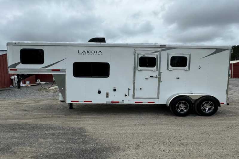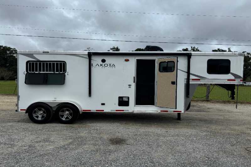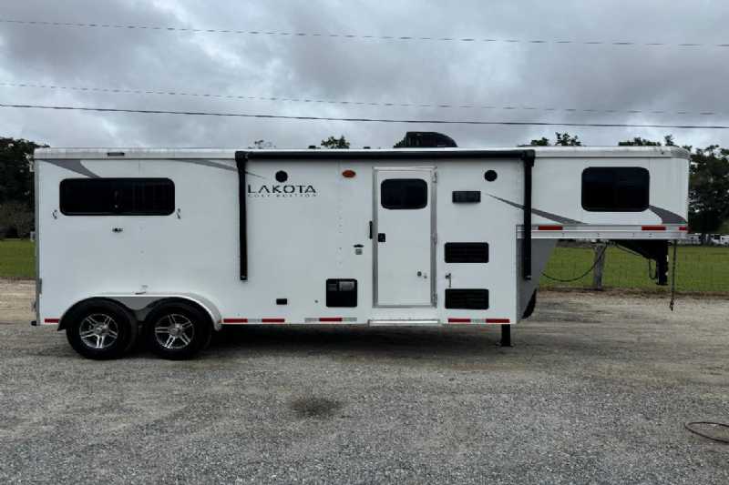 2023 Lakota 7209LQ, Living Quarters 9' Shortwall 14' Longwall Walk-thru Door Kitchen Refrigerator Cooktop Microwave Living Area Sofa A/C Furnace Radio Antenna Bathroom Bathroom Sink Toilet Shower Plumbing Fresh Water Gray Water Holding Black Water Holding Water Heater Power LP Tank(s) Battery Wired for 110v power Horse Area 2 Horse Escape Door Trailer All Aluminum Construction Hydraulic Jack Spare Tire Aluminum Floor 5200# Axles 16-inch Tires Electric Awning Dimensions & Weights Dimensions & Weights are approximate Outside Width: 7' Inside Height: 7'6 (22.5 hands) Box Length: 21' Empty Weight: 6465 lbs. GVWR: 10400 lbs.
