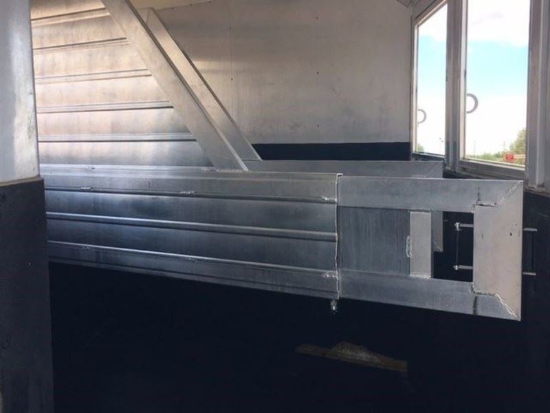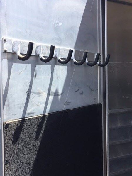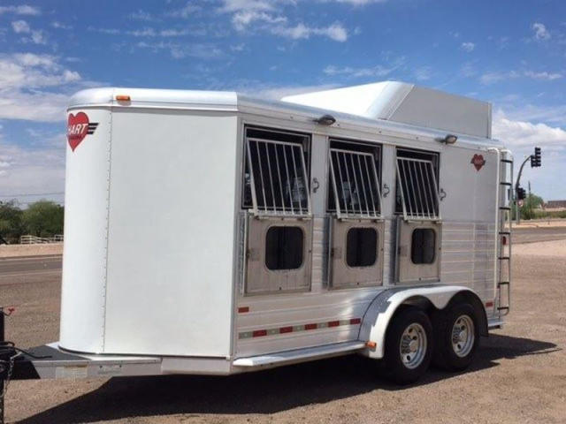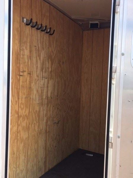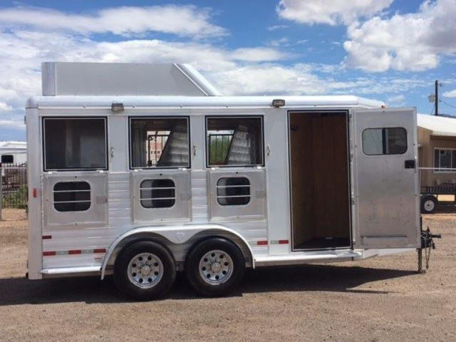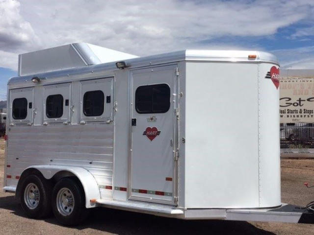2008 Used 3 Horse Medallion bumper pull, 6'8 wide, 7 tall, drop windows on the head and hip side, padded stalls, paneled front tack area, extra load lites, collapsible rear tack, hay rack & ladder along with aluminum wheels & good tires.