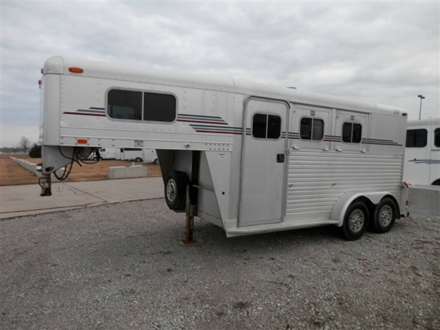 1997 C&C Trailers 7x14x7 2 Horse trailer Slant load. Gooseneck, 2-3.5K Rubber Torsion Axles,4-Wheel Electric Brakes,5-225-75R15 Radial Tires,42" Short Wall Tack Room,Collapsible Rear Tack,Drop Down Windows @ Head Side,Bus Windows @ Hip Side,Carpet on Bulkhead Wall.