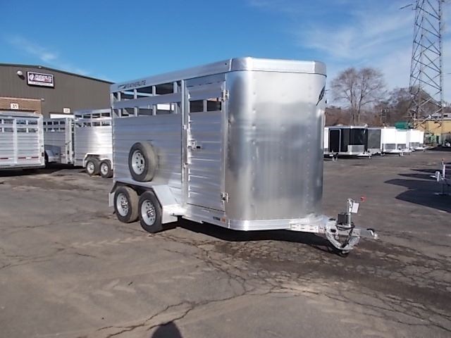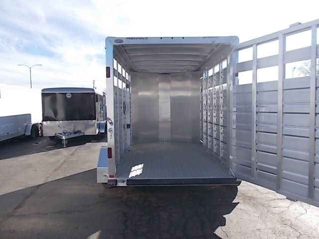 2017 Featherlite Livestock Trailer with the following specs: 6'7" x 12', 6'6" Inside Height, Silver Mod Wheels, Spare Tire and Carrier, Switch in Rear Frame for Horse/Stock Area, Floor Skid Resistant Extruded Aluminum, Jack Crank Type with Wheel, Side Panel with 2 Top Air Spacing, Gate Center with No Walk thru, Rear Gate Full Swing with Lockable Inside Slider, Door Escape, Bumper Rubber Dock.