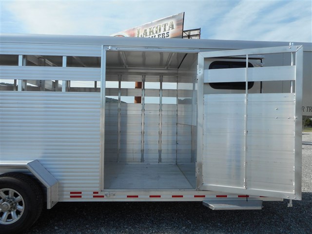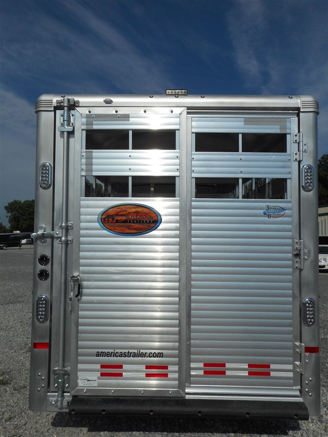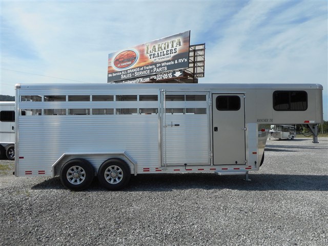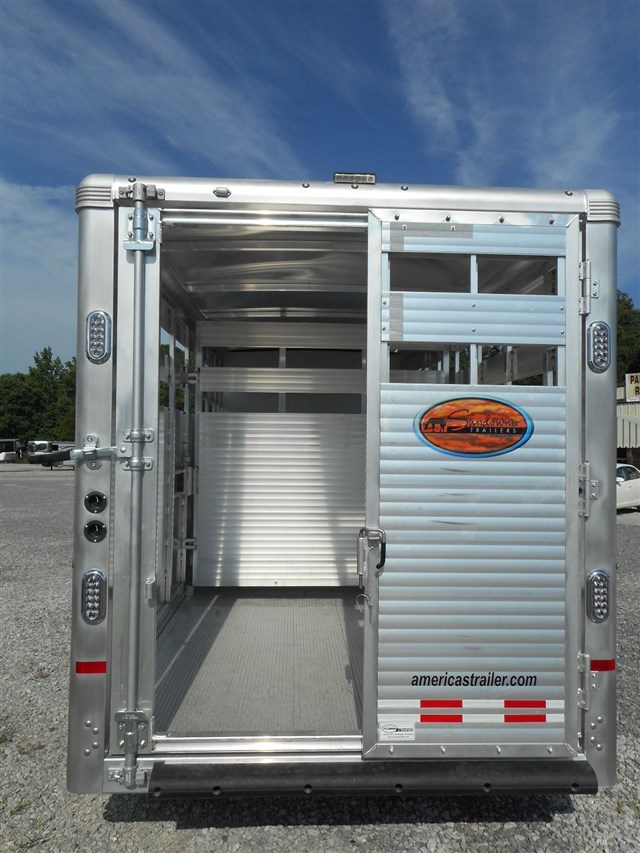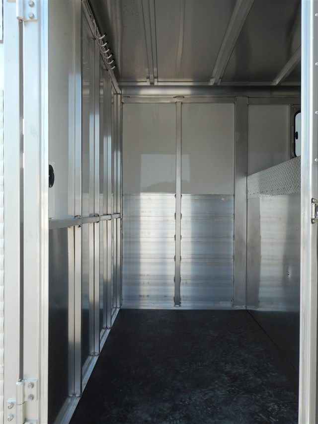 2017 Sundowner Rancher TR 20', ALL ALUMINUM, 7' Tall, 6' 9" Wide, 20' Floor Length, 28' Total Length, 4' Tack Room, Bridle Hooks, Tapered Nose, (2) 20 X 36 Sliding Windows in Nose, (2) Air Gaps, Plexiglass Ready, Extruded Aluminum Sides, Swinging Center Cut Gate, Side Access Door with Full Cam Latch, LED Light in Livestock Area, Single Swing Rear Gate with Calf Slide, LED Load Light, Rubber Bumper, Heavy Duty Fenders, (2) 7,000 lbs. Rubber Torsion Axles, 4 Wheel Electric Brakes with Safety Breakaway Kit, Aluminum Wheels, 235 X 16" Tires with Spare, Exterior LED Lights . WEIGHS: 4,390 lbs.