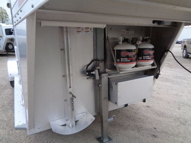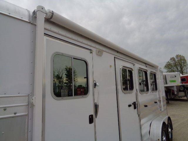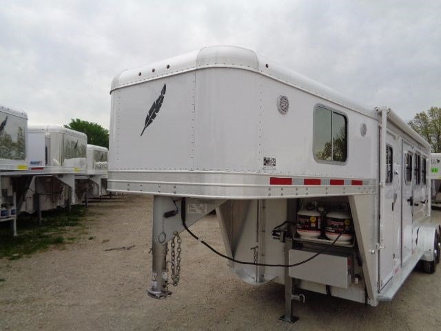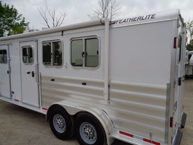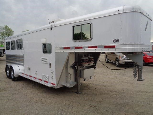 2013 Featherlite Model #8533 3 Horse Gooseneck Trailer With a 6' Short Wall Living Quarters. This All Aluminum Trailer Is 6'7" Wide x 7' Tall With a 20'Floor Length. Living Quarters Included A Separate Toilet/Shower Room With an Electric Exhaust Fan/Skylight. Also Comes With Refrigerator/Freezer, Microwave With Vent Hood, Dual Gas Burner Cooktop, S.S. Kitchen Sink, LED Interior Lights As Well As Ducted Heat & Air Conditioning, Camper Door With Separate Screen Door & a 16' Manual Awning. Horse Stall Area Includes 3/4" Thick Rubber Floor Mats, Collapsible Rear Tack Wall With Removable Saddle Rack Post, Halter Hooks & Brush Box Mounted On Rear Door. Outside Of Trailer Features Mirrored Glass Windows, Water Spigot, Dual Batteries With Aluminum Battery Box, Dual Propane Tanks, Electric Landing Gear, (2) Rear LED Load Lights & Much, Much More.