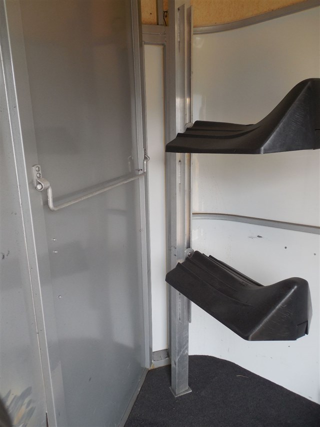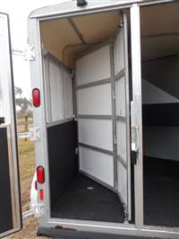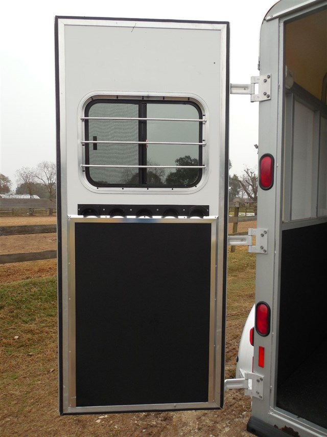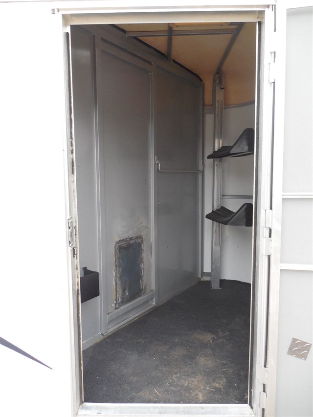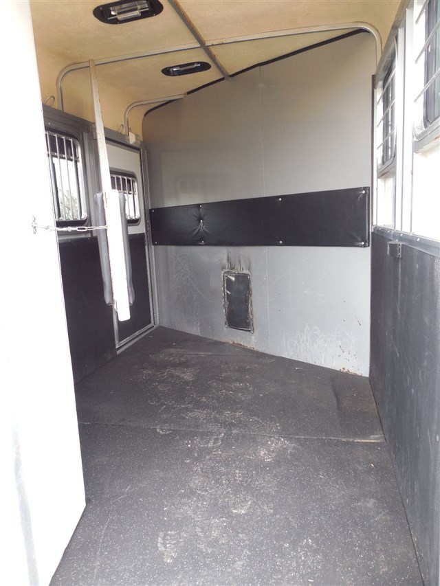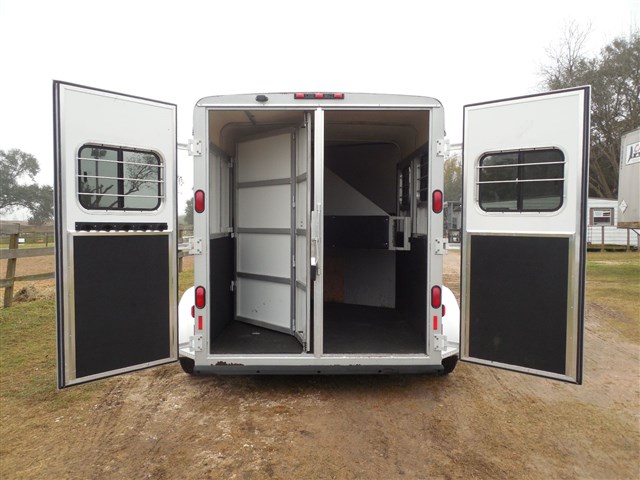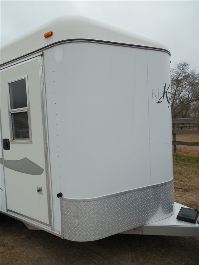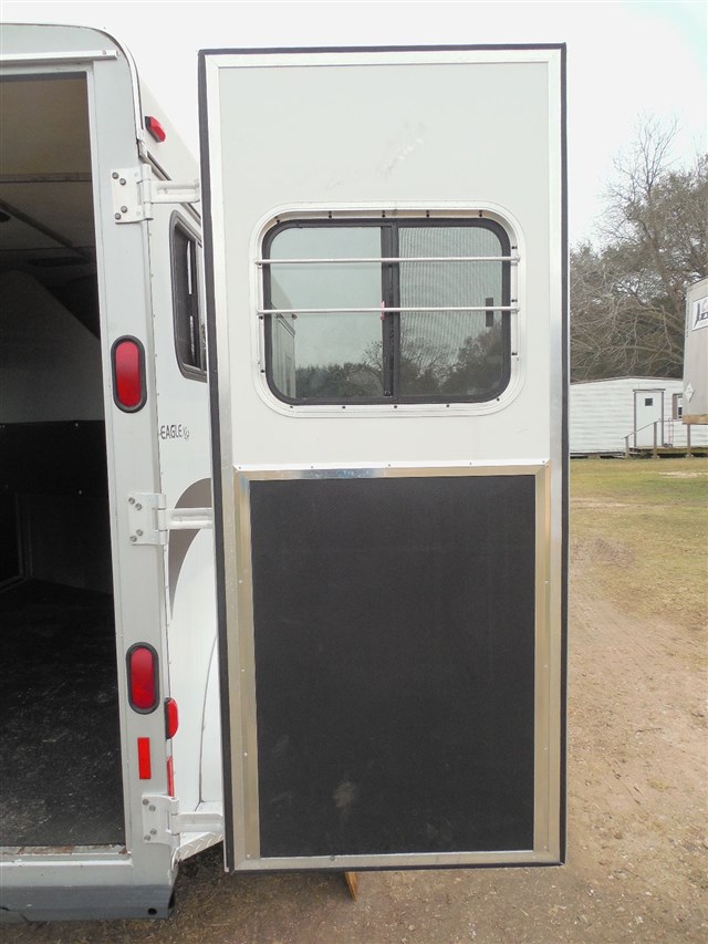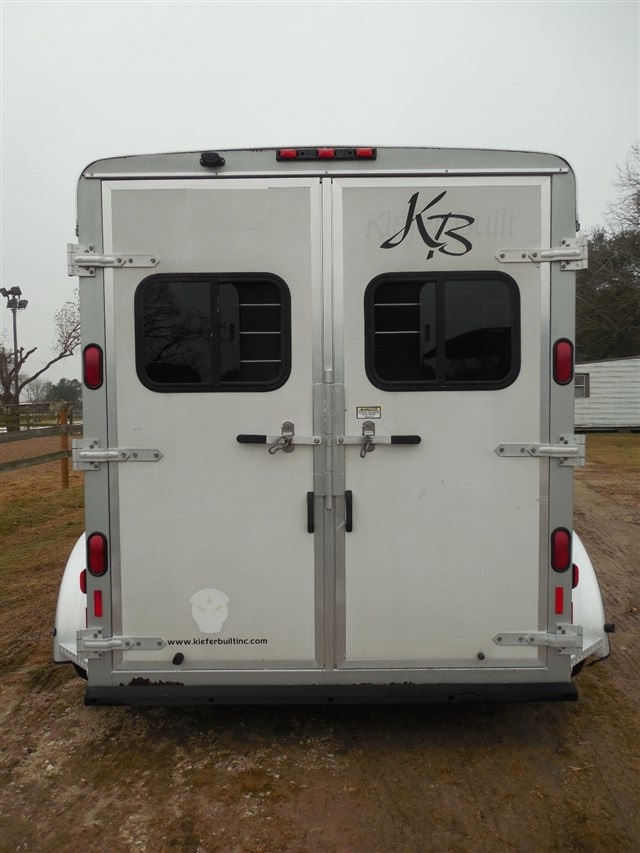 2004 2H Kiefer Built Eagle XLA For Sale. 2 Horse slant load with rear tack and dressing room, Tires and spare, Brake and electric work done, Recently cleaned and acid washed, HORSE AREA Approximate interior measurements: 7' tall, 6'4" straight width, 6'8" along the back wall, 10'10" along front wall, 7'11" along slant wall, Rubber mats on floor, Kick and paw mats on front and back walls, Padded dividers, no rips or tears in any of the padding!, Escape door in first stall, Drop-down windows at horses' heads, Drop-down bars at horses' heads, Sliding bus windows with fixed bars at horses' rear and back doors, Two roof vents in horse compartments, Lights in rear tack and at front left corner of horse compartment. Rear tack light works; front light does not but may just need a bulb replaced since other lights all work., Removable rear tack, Bridle hooks on door of rear tack, Saddle rack can be move to rear tack DRESSING ROOM, Screen door, Large roof vent, Blanket bar, Saddle rack (two saddles), Four bridle hooks, Working light, Carpeted This is a fantastic little trailer that hauls and maneuvers well.
