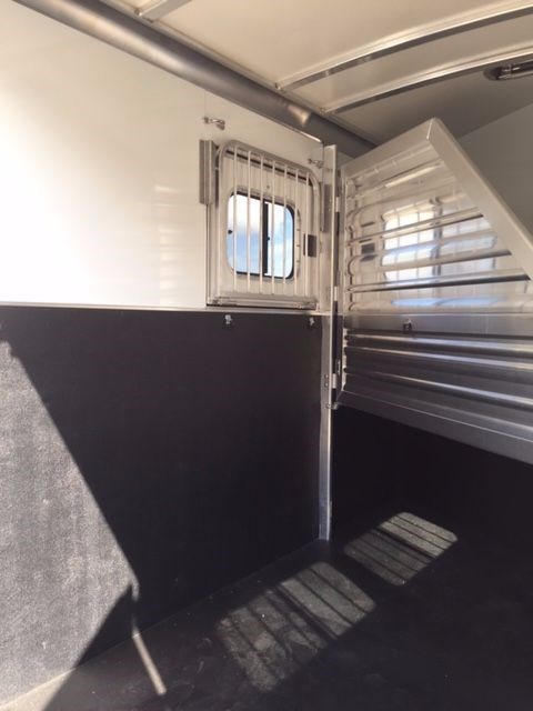 2017 Cimarron Norstar RTG 2 horse trailer slant load. All aluminum 2 horse slant bp, 7' 4 tall, 6'10 Wide, 4'3 shortwall dressing room, drop windows on the head, sliding windows on the butt side, Double walled and insulated walls in the horse area, insulated roof in horse area and dr rm, 2 pop up roof vents, bridle hooks, clothes rod, 25 gal water tank, Swing out saddle rack in the dr rm, tack door organizer, carpet in dr rm, alum floor with mats, complete spare, 3500 lb torflex axles, Dual brakes, running boards, extruded sides, LED lights, 2 loading lights, and 60/40 double rear doors.