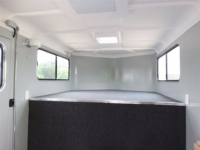 2016 EquiSpirit 2 Horse Walk Through Gooseneck w/ Side Ramp Structural, 29' 6" overall legnth, 22' body legnth, Rear Stalls: 7' stall, 3' 6" head area, Gatorshield Galvanized frame, 2' x 8' pressure treated lifetime warranty pine floor, 16" and 24"on center steel Galvanized cross brackets supporting floor, Seamless no leak molded one piece fiberglass roof, Rubber lining on interior horse walls, Galvanized bulkhead wall with opening window, Raised dressing room floor (no lip) for easy sweeping, Galvanized removable swinging horse/shoulder divider, Removable front center post in rear stalls, Solid removable swinging head divider, Quick release padded butt/breast bars, (2) dual opening alum roof vents � (1) over each horse head area, Full aluminum running boards, 1� Styrofoam insulation between walls throughout trailer, Side unload ramp with upper door and 20" x 24" window and 2pt safety latch Jack/Coupler, Adjustable height Fulton cable release 2 5/16", Single speed single leg jack Axle and Tire Info, Two 5,200 lbs. rubber torsion axles with electric brakes on both axles, Self adjusting brakes, Upgraded ST22575R15(D)tires, Aluminum rims, Spare tire mounted under gooseneck Doors, 30" dress door with 20 x 24" window, Full height rear doors with 20 x 24" sliding windows and screens, 48" low incline ramp over full height rear doors, 48" side ramp with upper storm door with window, Lifetime warranty marine grade plywood in ramps, (1) 30" side walk thru door with exterior butterfly safety latches on road side horse area Exterior, Durable, easy to replace, non-rust rubber ramp latches, Rear ramp safety latch, (4) exterior tie rings � (2) over each fender for horse tie and hay bag, (8) LED turn signal/brake lights � (3) sets in rear (low and middle and high) and one on each fender, 14 LED running lights to exceed DOT requirements, Set of back up lights, Chrome light guards on all running lights, Break-a-way battery mounted inside dressing area on DS nose wall, Full running boards Interior, Padded butt and breast bars, 2"foam and vinyl padded side walls and center divider, Ditch side stall latch to attach rear center divider to move out of way, Rear header pad mounted in the interior over the top rear doors, (3) interior lay flat tie rings per horse, (2) square vinyl feed bags,(1) per horse, Carpet on dressing room floor and bulkhead dressing room wall, Large brush tray mounted on interior of dressing room door, (4) dome lights in horse area and (2) in dressing room gooseneck area, Exterior remote master switch for interior lights, Exterior remote master switch for dressing room lights, Rubber floor mats covering entire horse area, (6) interior bridle hooks in dressing room, (2) special wire saddle racks in dressing room with adjustable placement, (2) helmet racks, Lifetime warranty on wood floor in horse area, Lifetime warranty on marine grade plywood in ramp(s), 8-Year structural warranty, 3 year bumper to hitch warranty ADDITIONAL OPTIONS: Add additional footage to dressing room - Add additional footage to horse head area Add (2) saddle racks for a total of 4 Bridle hooks in addition to standard for a total of (12) Gooseneck storage bin step 110 volt electrical system breaker box, cable, 2 interior outlets, & light. Dome vent with screen and fan Air conditioner ready 30 gallon exterior water tank under gooseneck Flip up table - Bulkhead door - Solar panel to charge 12v battery Outside tie rings - add (2) sets of tie rings for horse and hay bags near rear of trailer