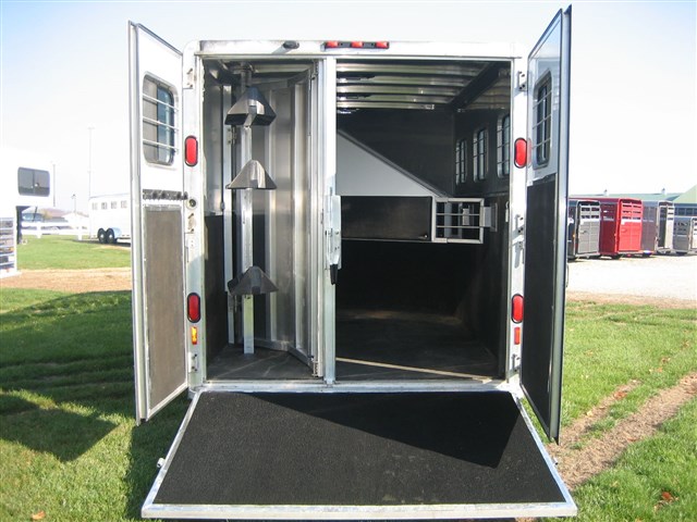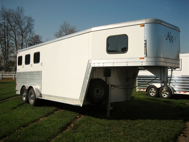 2006 Kiefer Built X-3 3 horse trailer, This all aluminum trailer measures 7'x7'x18' with an overall length of 26' and has a exterior rear ramp, 4' SW dressing room, spare tire, floor mats, stall pads, kick mats, 2 dome lights and 3 roof vents.