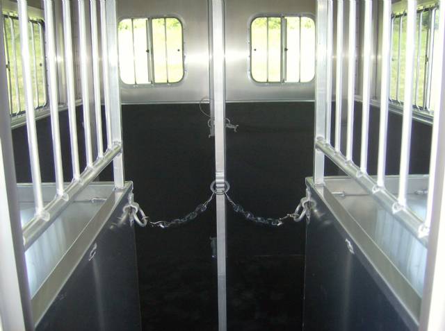 2015 Featherlite 9407 2 horse trailer, Bumper Pull, Dressing Room, Saddle Rack, Straight Load with Mangers, Drop Down Feed Doors 14' long x 6'7" wide x 7'6" high with a 48" dressing room. GVWR of 7000 lbs. Trailer weight of 3000lbs. Walk thru door from dressing room to horse area.