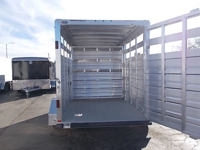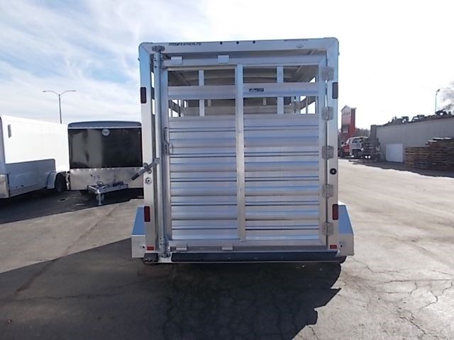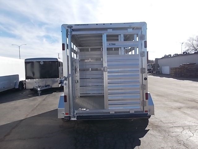 2017 Featherlite Livestock Trailer with the following specs: 6'7" x 12', 6'6" Inside Height, Silver Mod Wheels, Spare Tire and Carrier, Switch in Rear Frame for Horse/Stock Area, Floor Skid Resistant Extruded Aluminum, Jack Crank Type with Wheel, Side Panel with 2 Top Air Spacing, Gate Center with No Walk thru, Rear Gate Full Swing with Lockable Inside Slider, Door Escape, Bumper Rubber Dock.