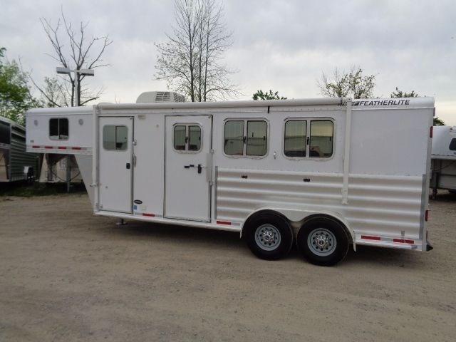 2013 Featherlite Model #8533 3 Horse Gooseneck Trailer With a 6' Short Wall Living Quarters. This All Aluminum Trailer Is 6'7" Wide x 7' Tall With a 20'Floor Length. Living Quarters Included A Separate Toilet/Shower Room With an Electric Exhaust Fan/Skylight. Also Comes With Refrigerator/Freezer, Microwave With Vent Hood, Dual Gas Burner Cooktop, S.S. Kitchen Sink, LED Interior Lights As Well As Ducted Heat & Air Conditioning, Camper Door With Separate Screen Door & a 16' Manual Awning. Horse Stall Area Includes 3/4" Thick Rubber Floor Mats, Collapsible Rear Tack Wall With Removable Saddle Rack Post, Halter Hooks & Brush Box Mounted On Rear Door. Outside Of Trailer Features Mirrored Glass Windows, Water Spigot, Dual Batteries With Aluminum Battery Box, Dual Propane Tanks, Electric Landing Gear, (2) Rear LED Load Lights & Much, Much More.