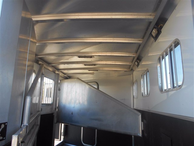 2004 EXISS 3 HORSE WITH 8' LIVING QUARTERS. 7' wide, 7' tall, drops on head side, bus windows on butt, awning, collapsible rear tack, polished nose, escape door, slates on horse area, 60/40 rear doors, pass thru door, ref, microwave, cook top, sink, A/C and shower.